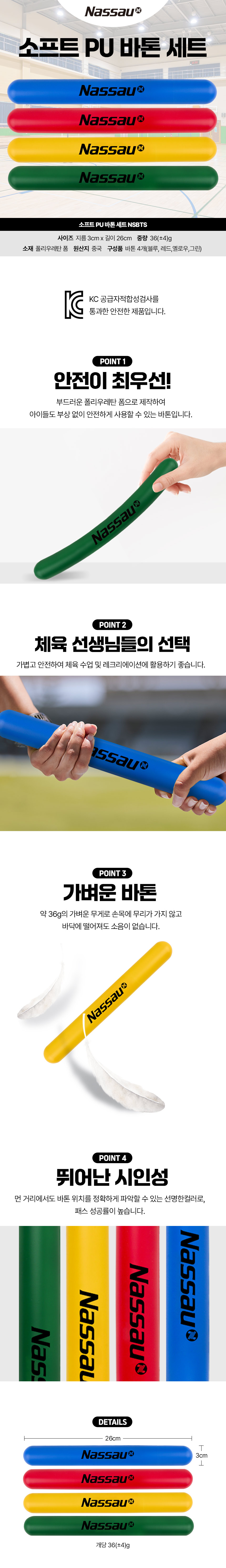 1. 안전이 최우선 2. 체육 선생님들의 선택 3. 가벼운 바톤 4. 뛰어난 시인성